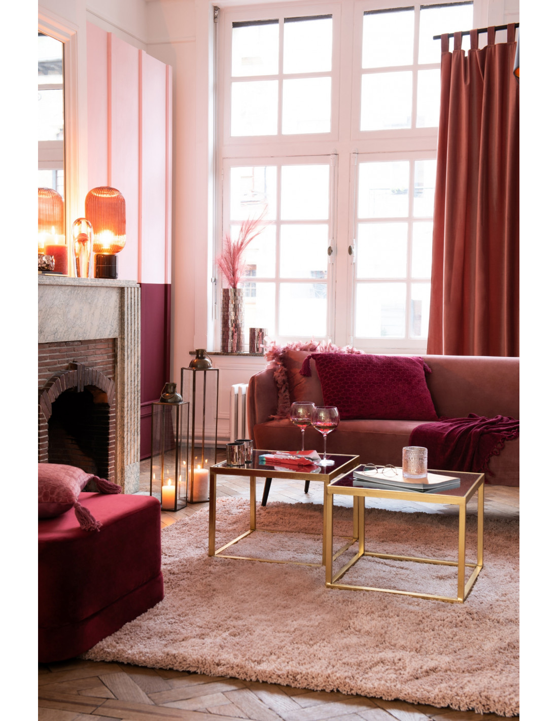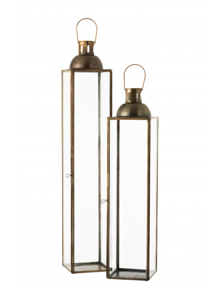 Farol portavelas en bronce y cristal