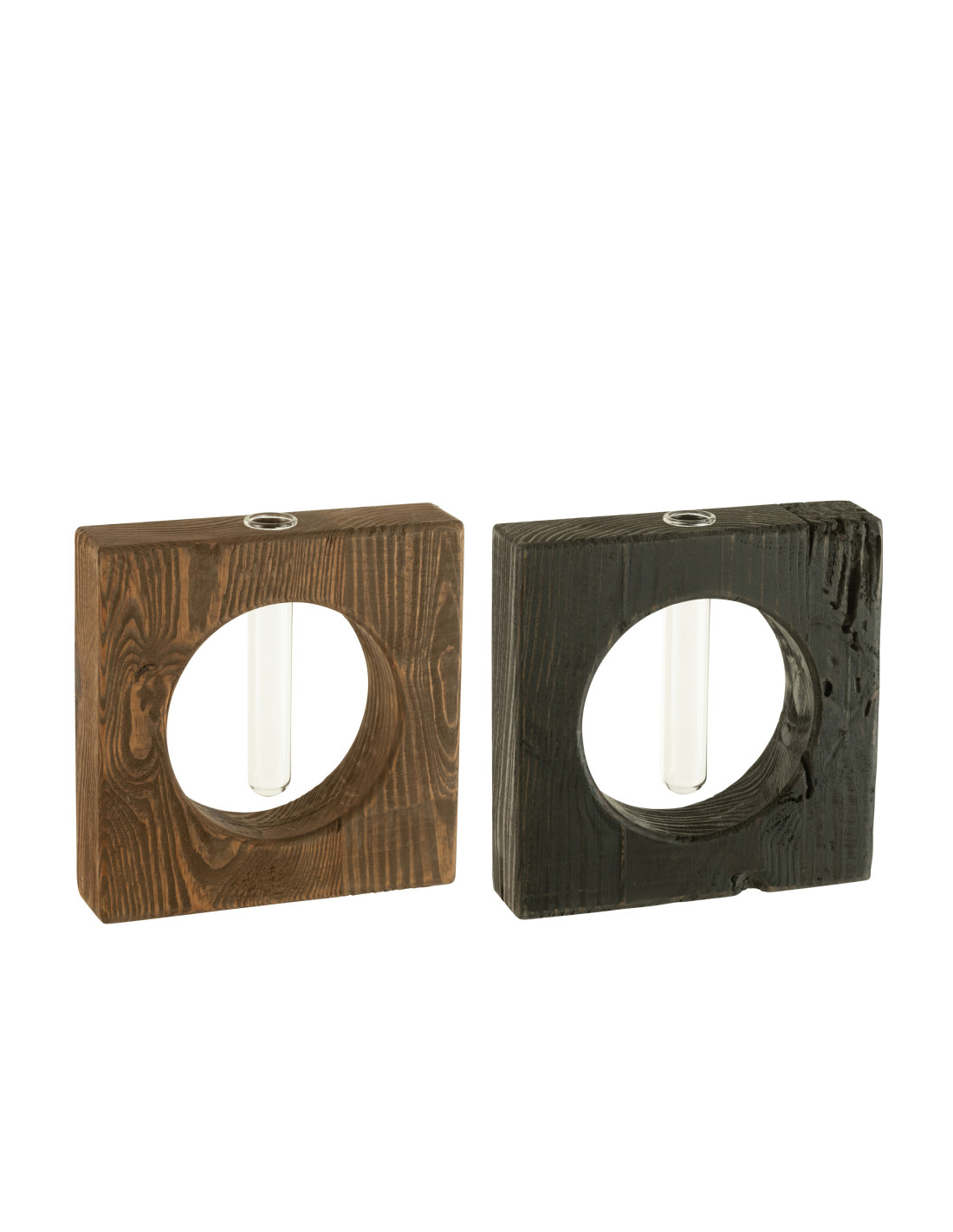 Jarrón con forma de vial de madera de pino y vidrio de color negro y marrón. Se venden por separado. Precio unitario