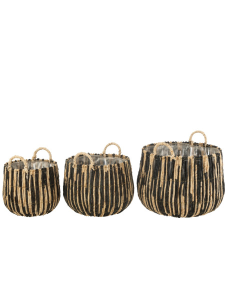 CESTA DE CAÑA NEGRO Y NATURAL M