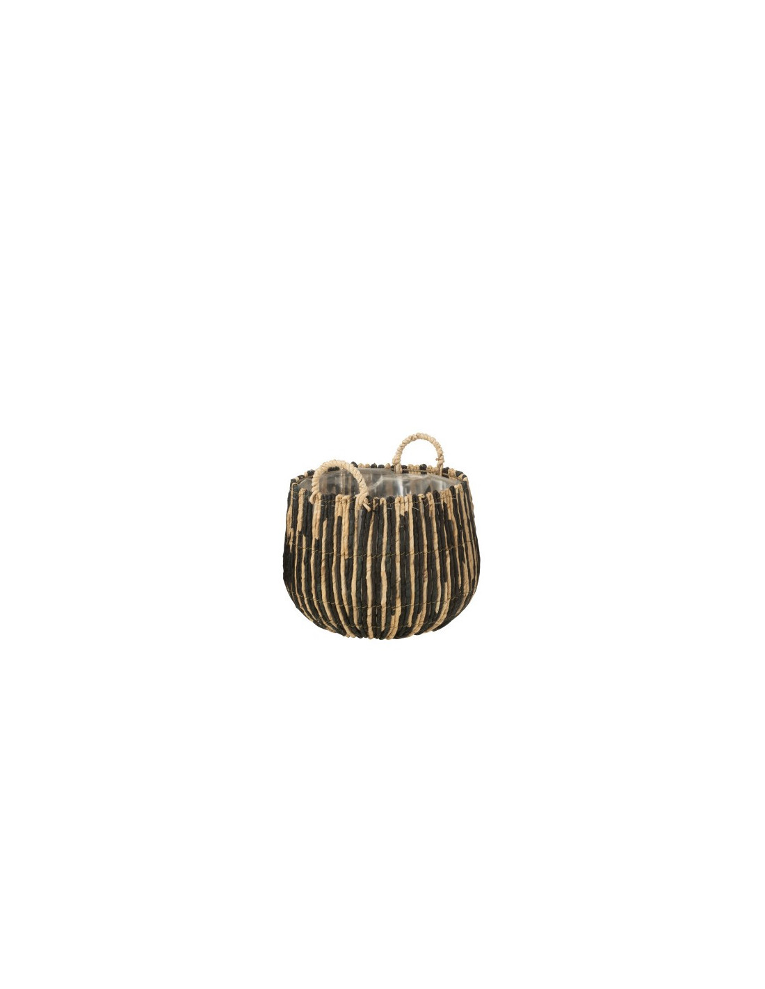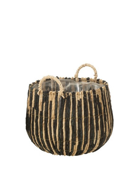Cesta de caña y hierro de color negro y natural.