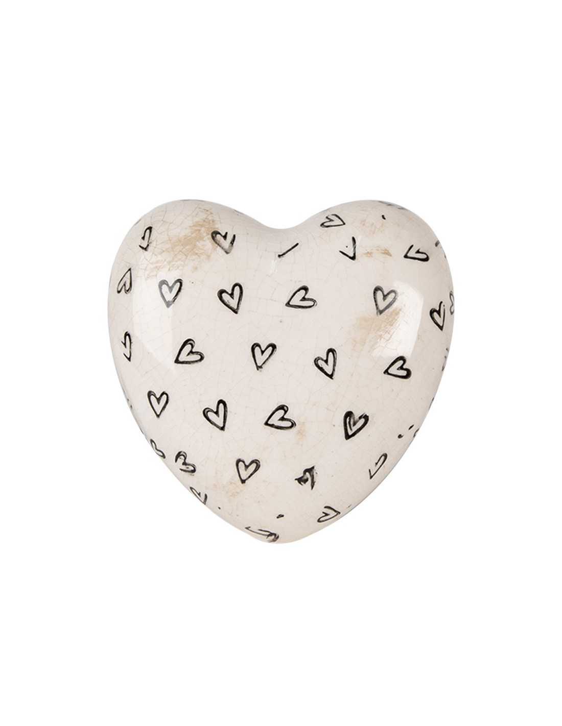 Figura decorativa de corazón con estampado de corazones negros de cerámica beige.