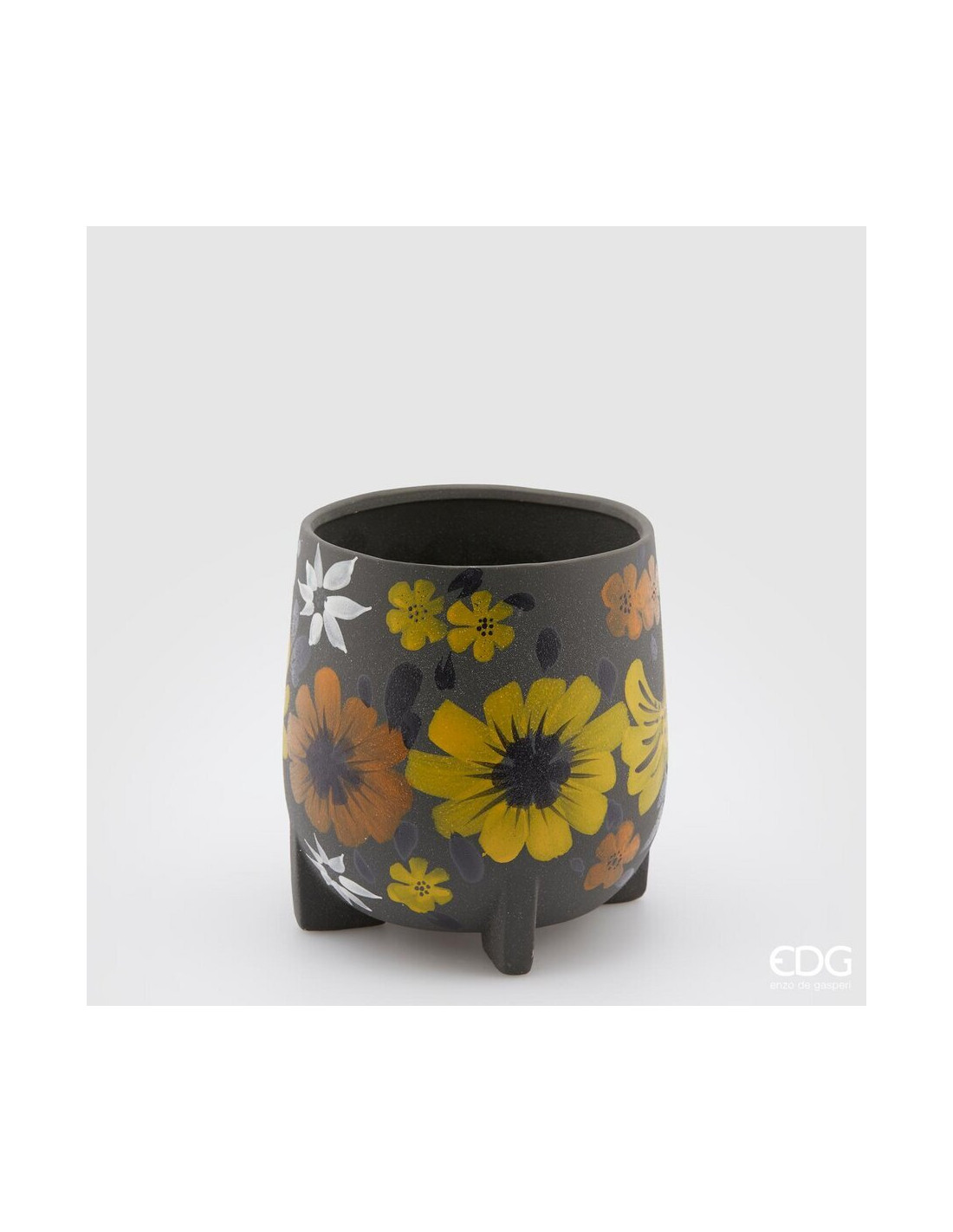 Jarrón Chakra con estampado de flores de color negro.