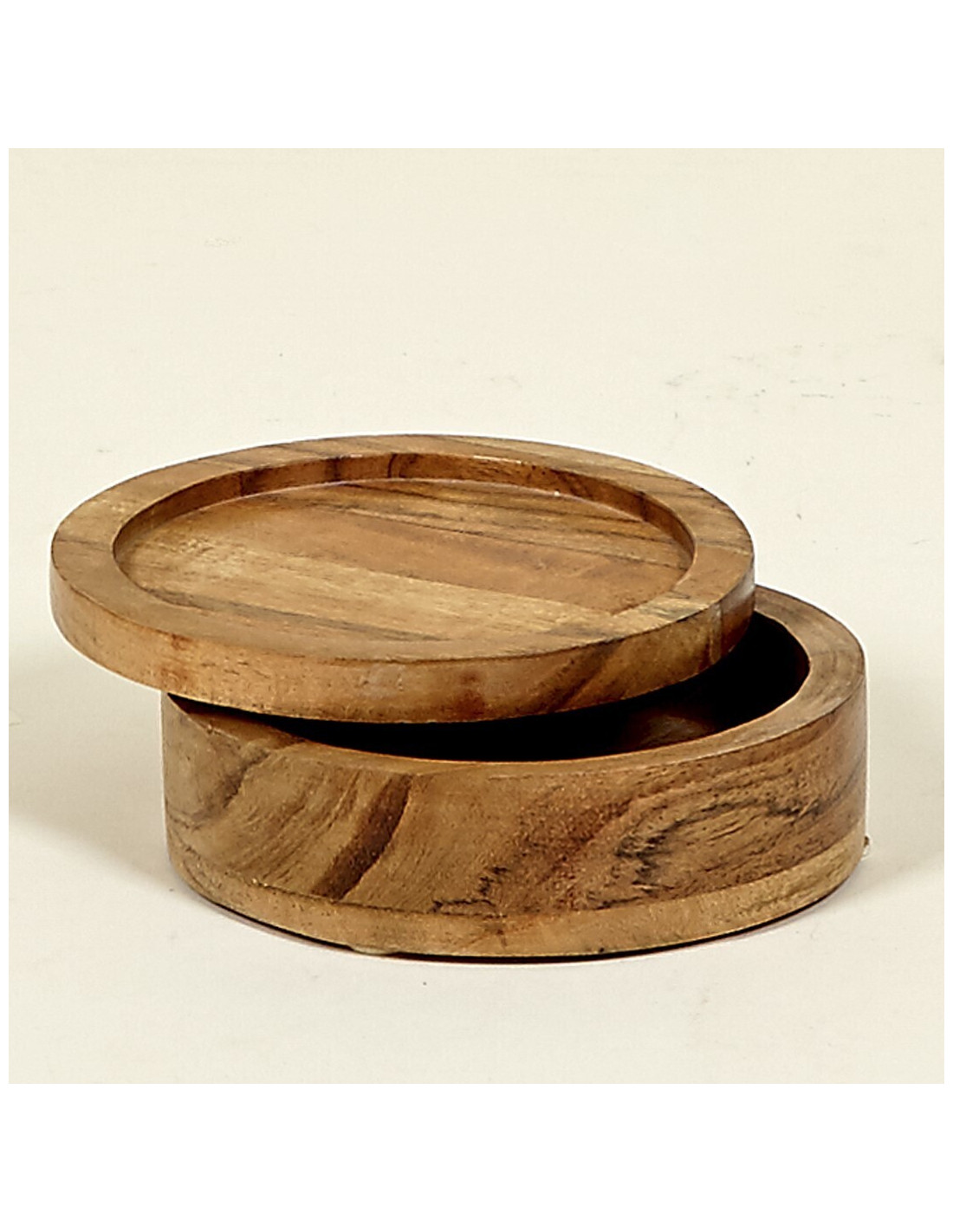 Caja y tapa de madera mango. Ø15 x 6 cm