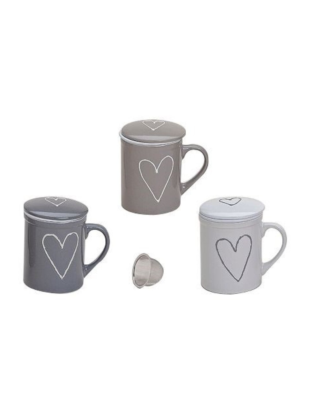 Tazas de té con colador color gris con corazón.
