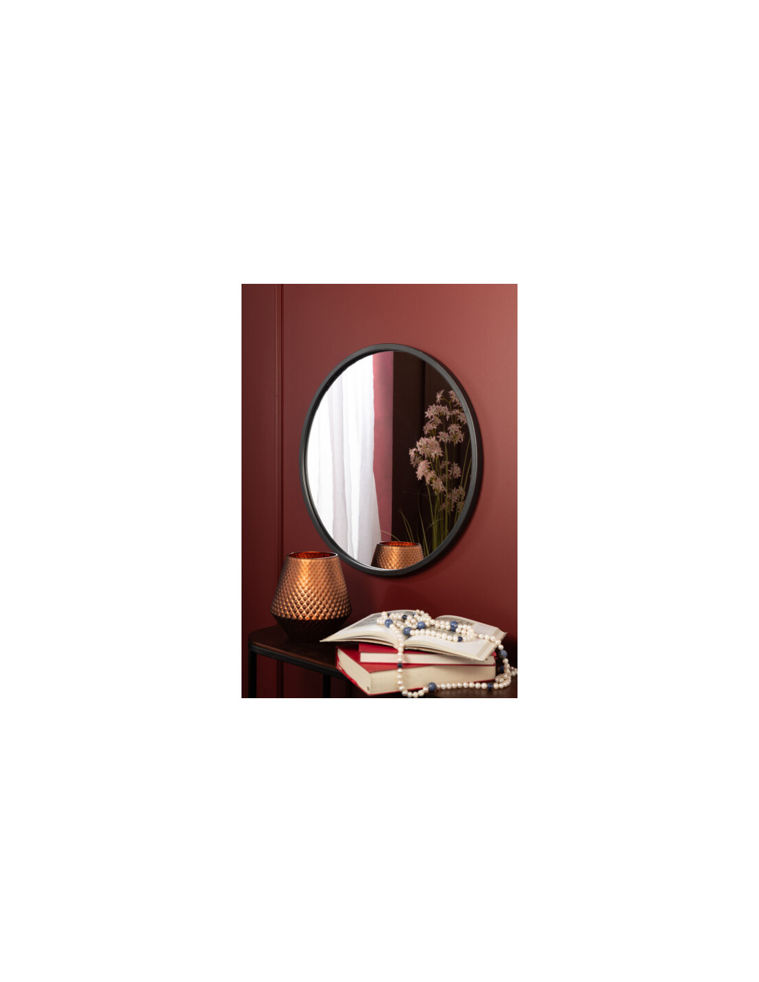Espejo redondo de color negro mate.