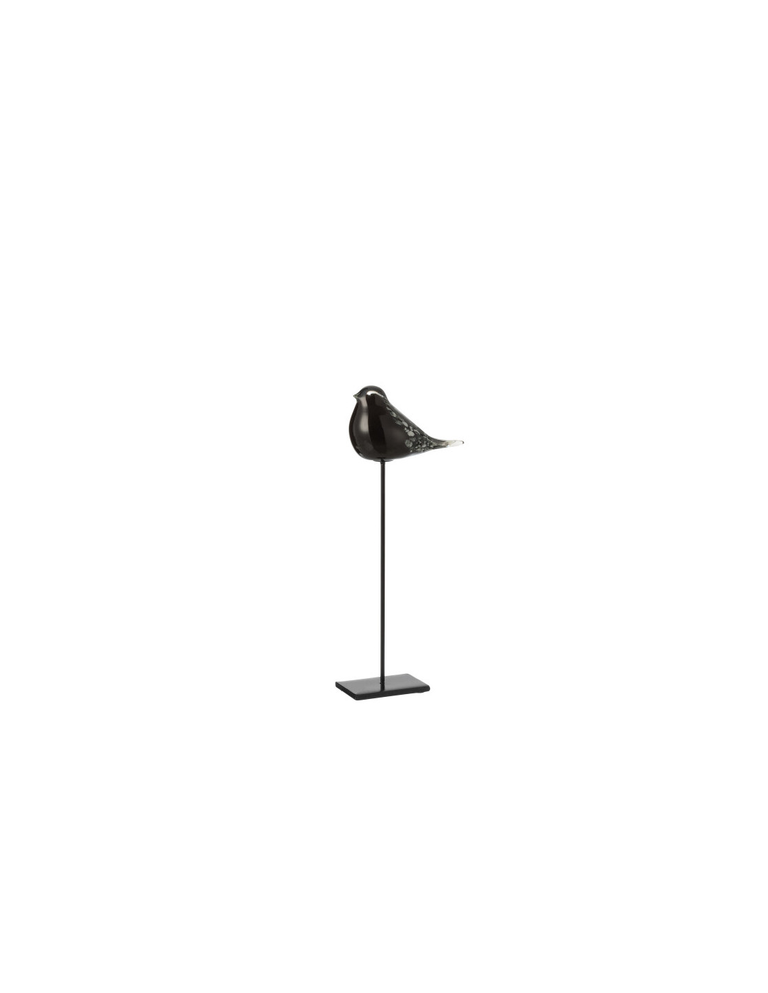 Pájaro de cristal y metal negro con pie.
